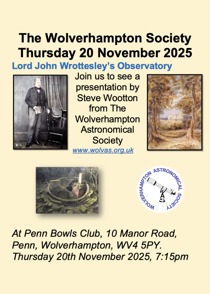 You can join us to see a presentation by Steve Wooton from The Wolverhampton Astronomical Society (https://www.wolvas.org.uk).